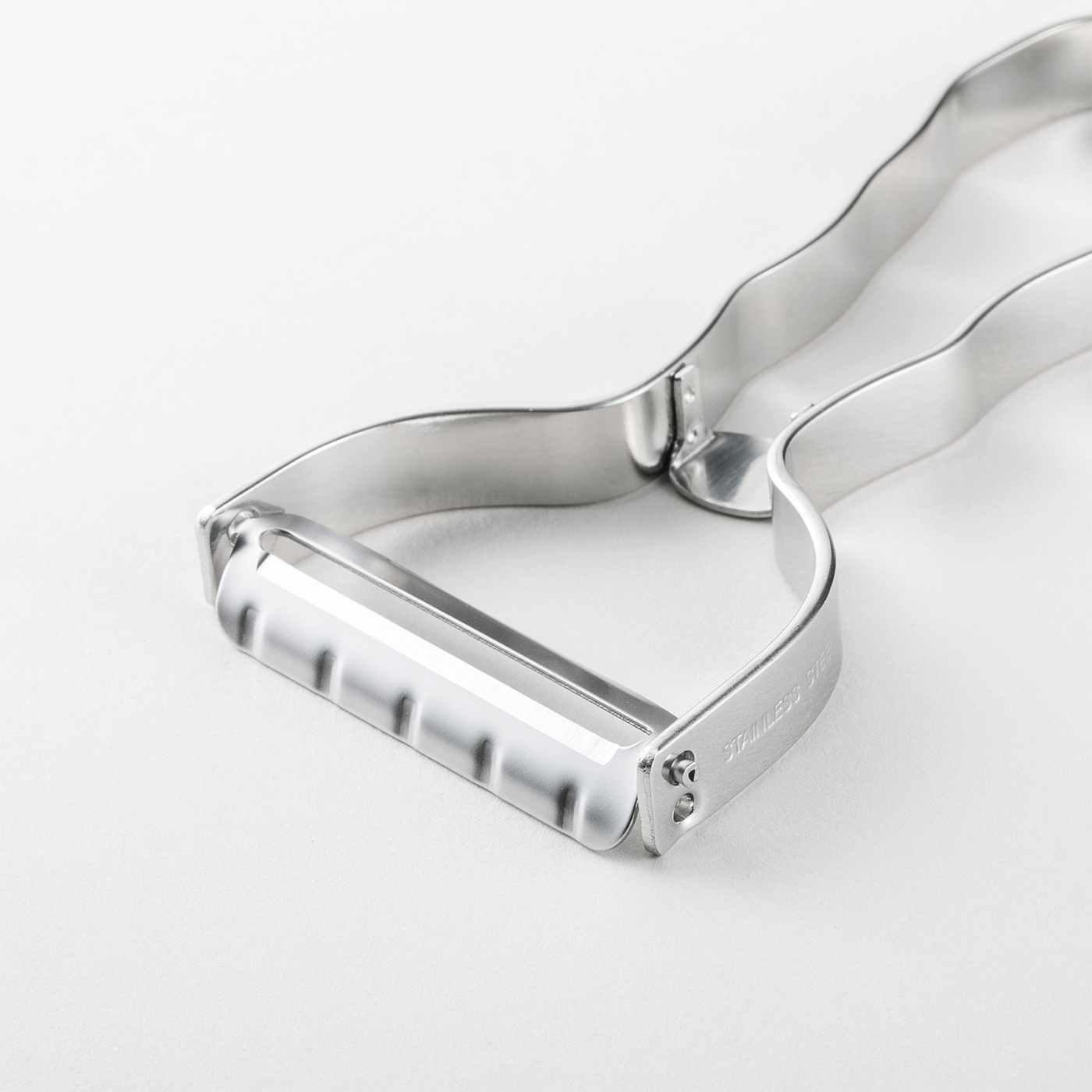 手にフィットして、よく切れる斜め刃のステンレスピーラーです。