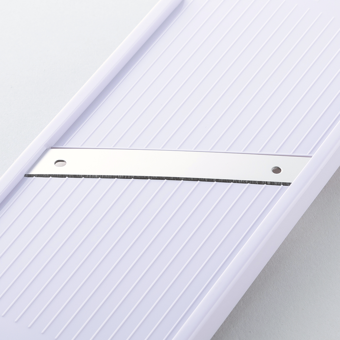 • 鋭い切れ味で、野菜のスライスが簡単に均一の薄さにできあがります。