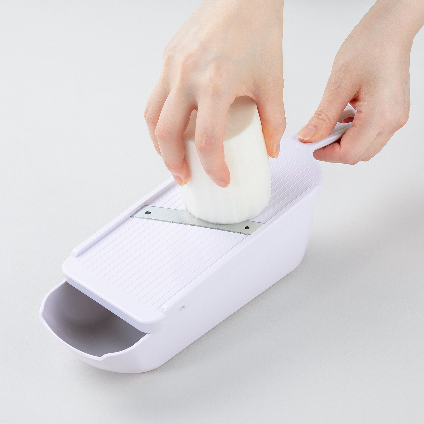 • 幅広プレートで大根スライスやキャベツのせん切りにも便利です。