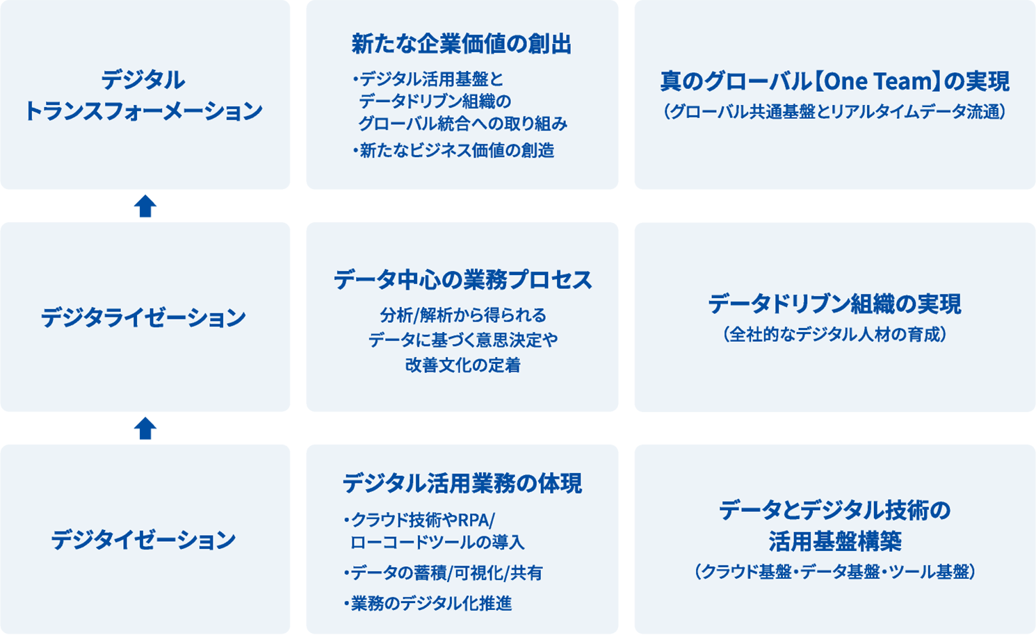 さらに、KAIグループにおけるデジタルトランスフォーメーション(DX)のゴールを「真のグローバルOne Teamの実現」と定め、グローバル共通基盤とリアルタイムデータの流通による新たな企業価値の創出を目指し、以下の戦略を推進し、全社一丸となって、このゴールの達成に取り組んでまいります。
