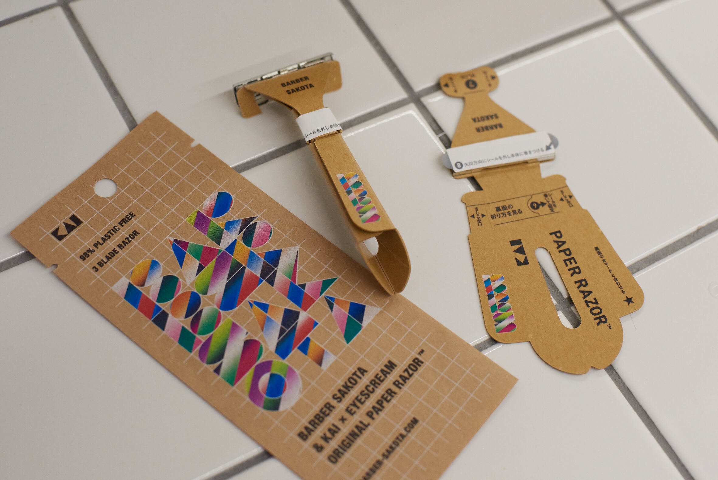 今回BARBER SAKOTAとのコラボレーション紙カミソリ™は、BARBER SAKOTAが本来持っている印象のバランスを考えて、鮮やかなタイポグラフィが映えるスタイリッシュなデザインになっています。