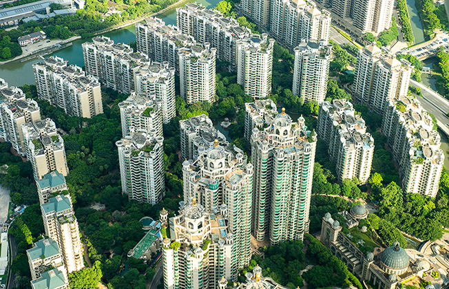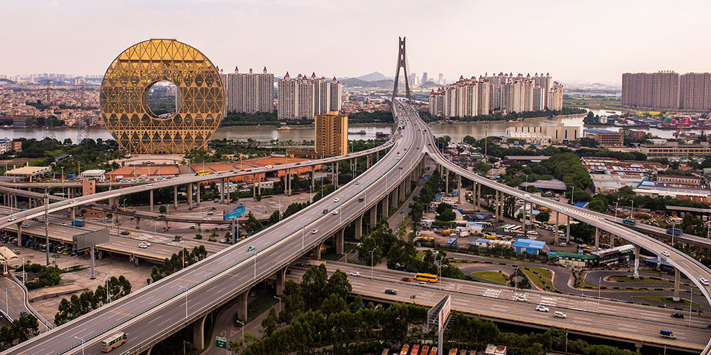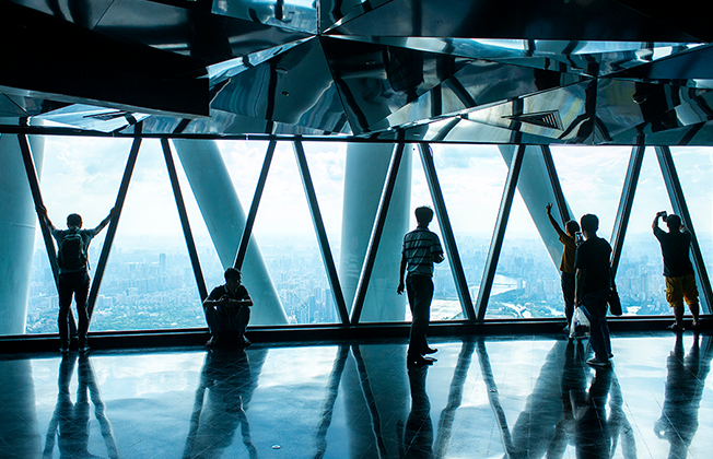 地上433メートルの地点にある〈広州塔〉の屋内展望台からは、急速に経済発展を遂げてきた広州の街並みを見渡すことができる。