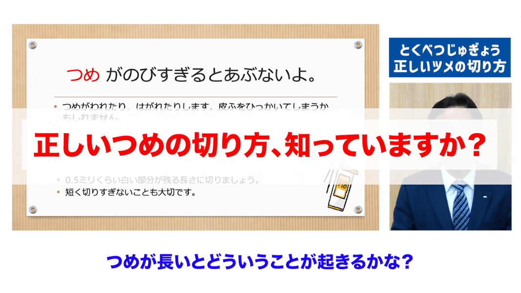 この動画授業を通して、一人でも多くの子どもたちが正しい爪のケアと爪切りの使い方を身に付け、