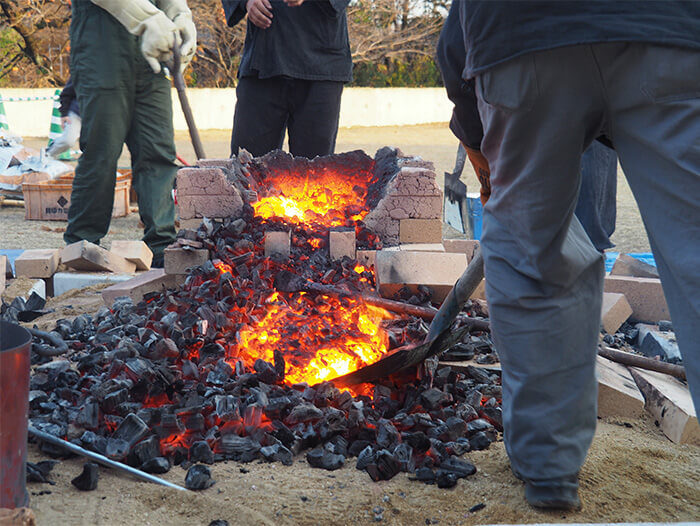 ~ 伝統技術「関鍛冶たたら製鉄」を公開、小学生が玉鋼づくりを体験 ~