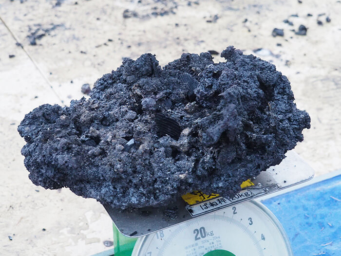 ▼取り出した玉鋼を含む粗鋼の塊「鉧(ケラ)」