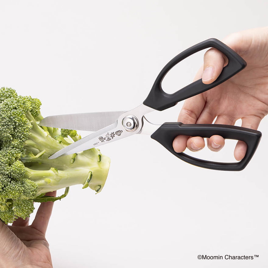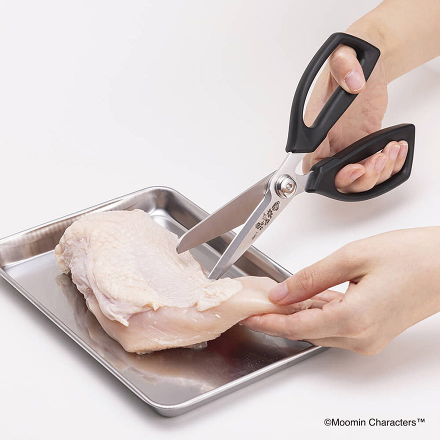 細刃と太刃の組み合わせで、丈夫で鋭い切れ味を実現したキッチンばさみです。細かいギザギザのセレーション刃によりすべりにくく、食材をしっかり捉えます。手当たりのやさしいハンドル素材です。食洗機対応。