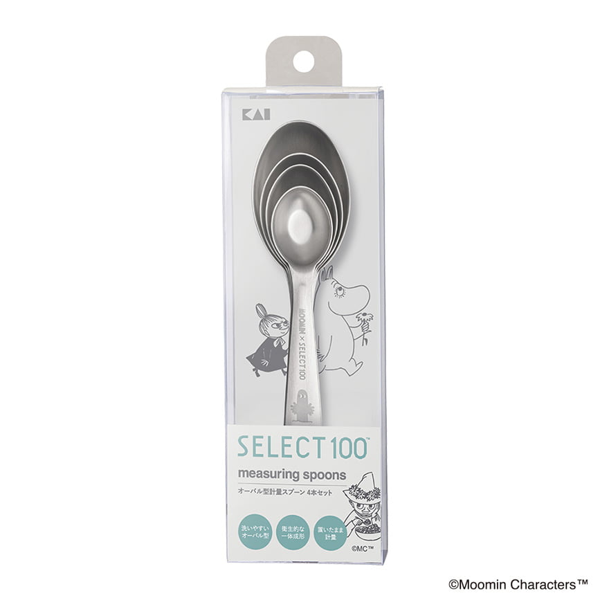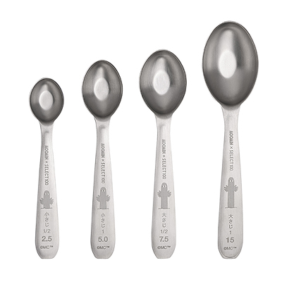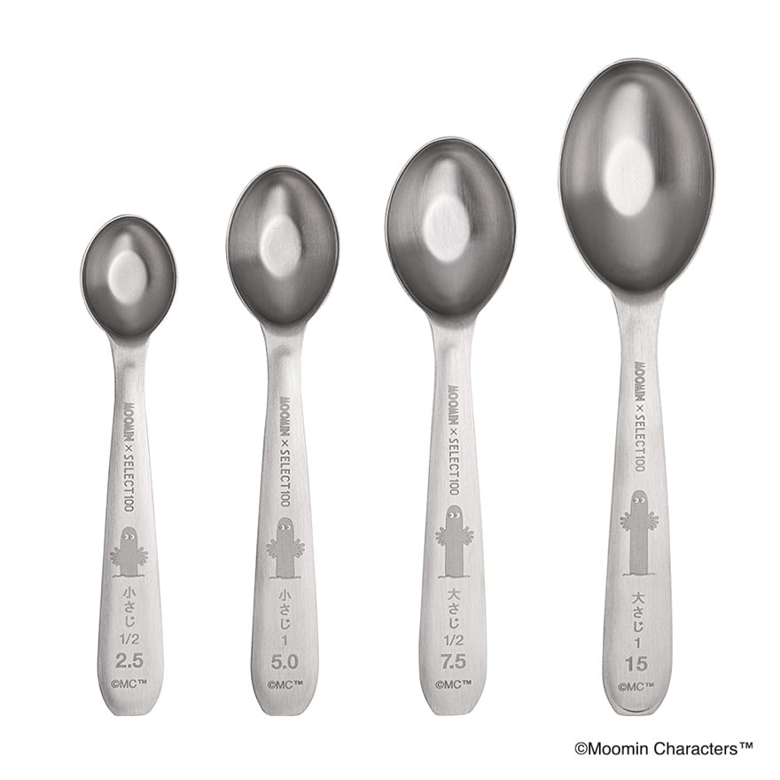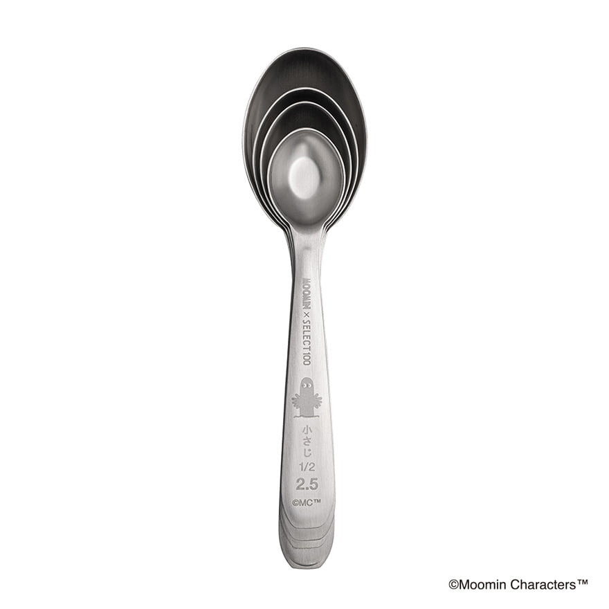 ペースト状の調味料も量りやすく、洗いやすいオールステンレス一体成形のオーバル型計量スプーンです。大さじ1、大さじ1/2、小さじ1、小さじ1/2の4本セットです。置いたまま計量ができる自立型です。食洗機対応。