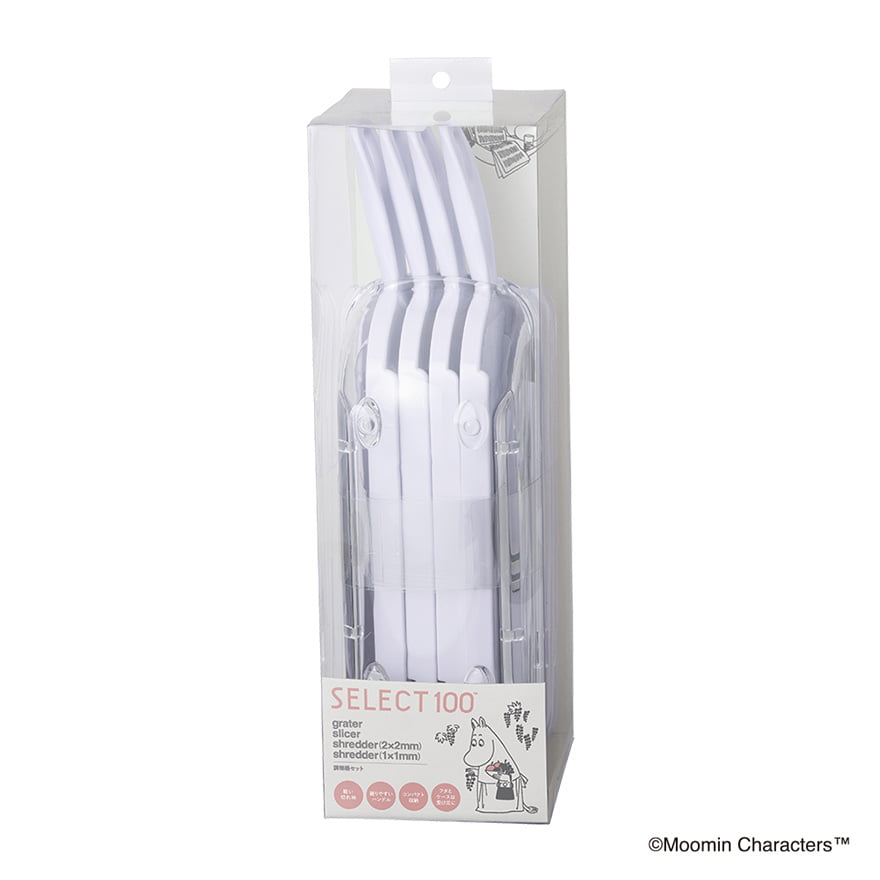 調理シーンで活躍する調理器(スライサー、せん切り器、細せん切り器、おろし器)がセットされています。フタとケースはそれぞれ受け皿として使えるので、同時に2つの調理器を使用できます。食洗機対応。
