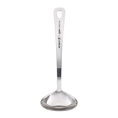 液だれしにくく注ぎやすい、フチ付きのレードルです。鍋のカーブにもフィットするので、スープなどを最後まですくえます。つなぎ目のないステンレスの一体成形なので、衛生的で、洗いやすい形状です。食洗機対応。