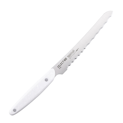 3種の刃形状(粗めの波刃、緩めの波刃、直線刃)になっており、ハードパンからソフトパンまで切りやすいブレッドナイフです。手になじみ握りやすい形状の人工大理石ハンドルです。食洗機対応。