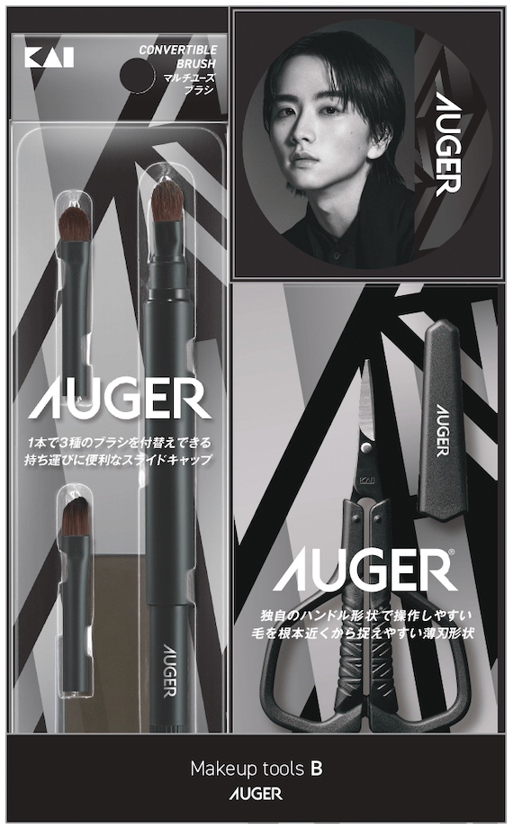 グローバル刃物メーカーの貝印株式会社(本社:東京都千代田区、代表取締役社長兼COO:遠藤浩彰)のグルーミングツールブランド「AUGER(オーガー)」は、AUGER マルチユーズブラシと毛抜き、マルチユーズブラシとオシャレハサミ、ツメキリとネイルファイル、それぞれ3種のセットにAUGERブランドアンバサダーの板垣李光人さんの特製バッジが付いた数量限定のギフトセットを貝印公式オンラインストアをはじめ、バラエティショップなどにて2024年1月17日(水)より順次販売を開始いたします。
