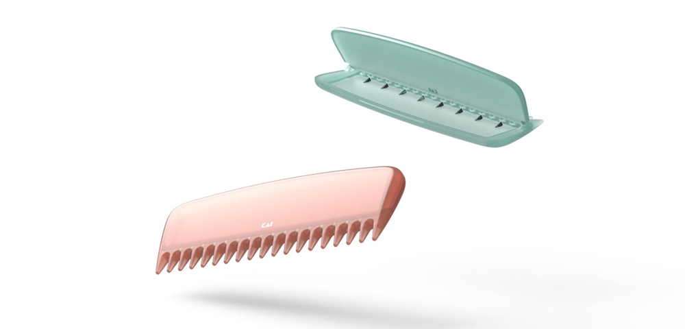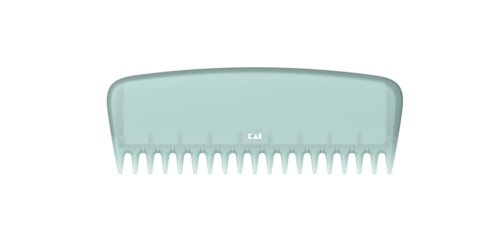 内蔵した刃でパウチに穴を開けて挟むことで、中身を絞り出せるバスコーム。コーム形状を生かし、そのまま髪に塗布することが可能。ノンストレスで様々なパウチを試すことができるデザインです。