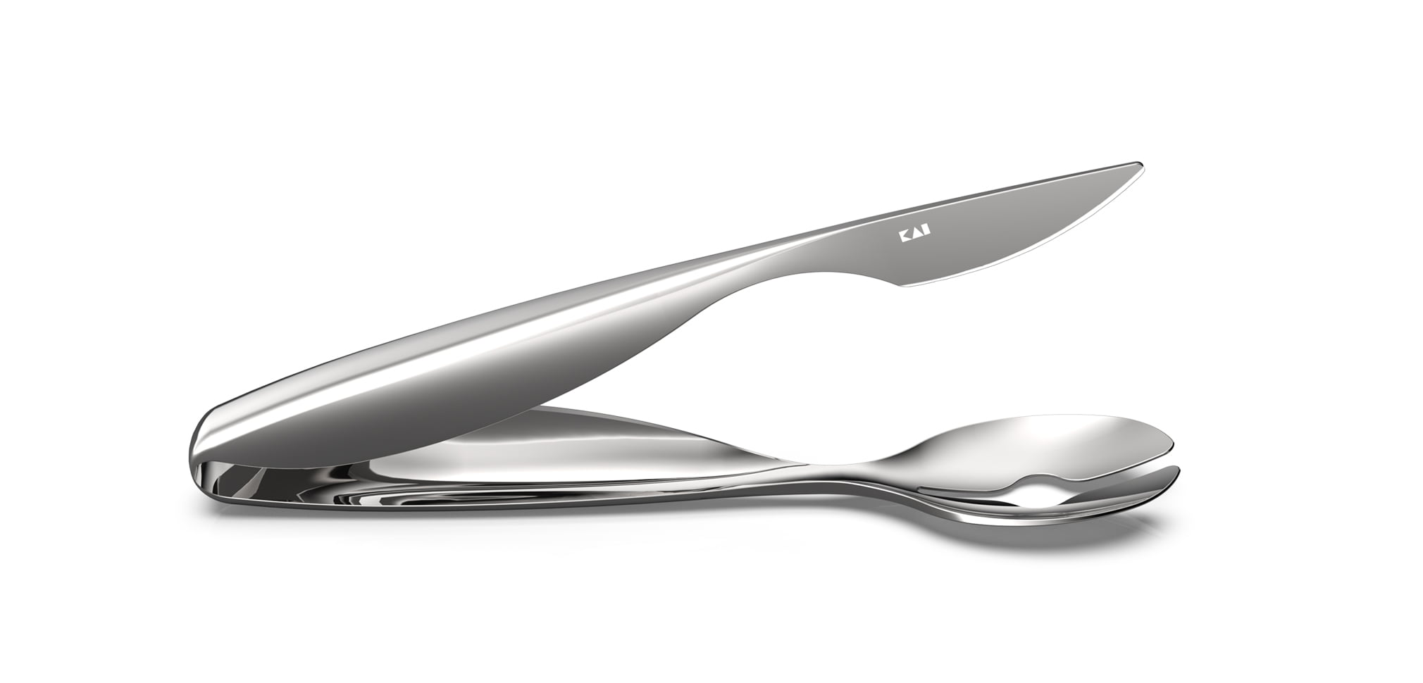 スプーンのセンターに施したスリットに刃を通せる構造で、片手で握るように食材を切ることができます。