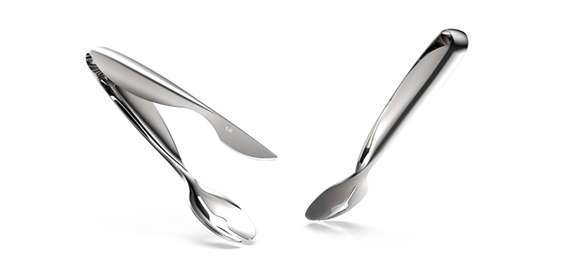 片方の先端に刃が、もう片方の先端には穴の開いたスプーンがついたトング。