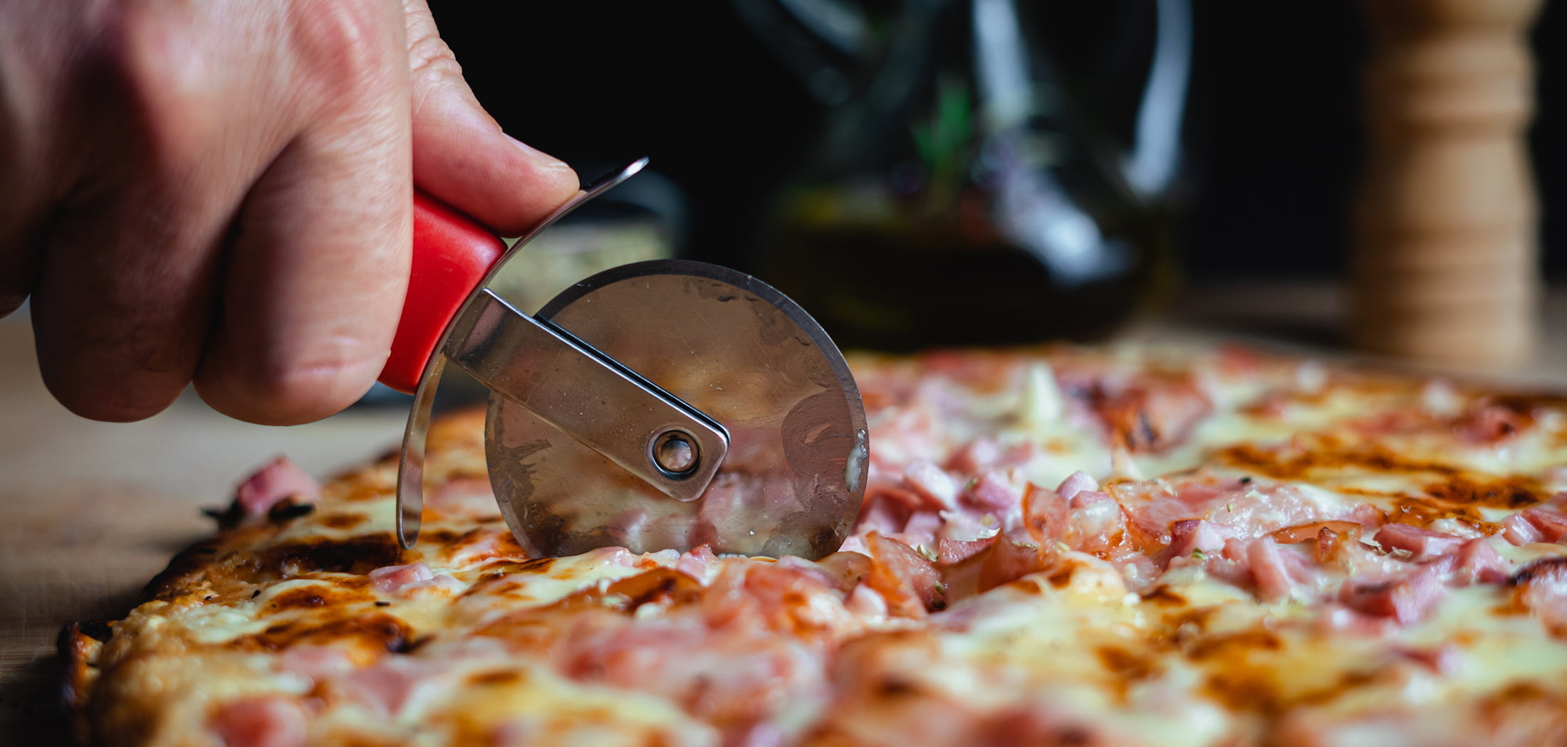 みんな大好きな“ピザ”。私も好物ですが、いつもカットのしにくさと食べにくさを感じていました。まず、カットするには円盤刃のピザカッターがお馴染みですが、一度で均等に切るのは簡単ではありません。食べる際も、ナイフとフォークを使用する場合もありますが、やはり手で持ってかじりつくのが味わい深いもの。しかし出来立てのピザはアツアツで持ちにくいうえ、先端が垂れ下がって食べにくく、なにより手も汚れてしまいます。